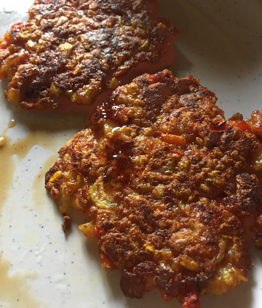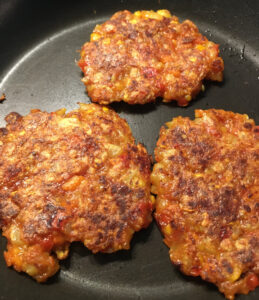 1. In der Bratpfanne Kokosfett oder Olivenöl erhitzen. Mit einem Löffel einen Sechstel der Masse in die Pfanne legen, flachdrücken.