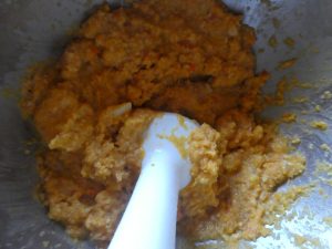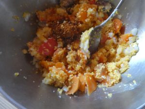 mit dem Couscous und dem Gemüse gut mischen, danach mit dem Stabmixer oder in der Küchenmaschine fein pürieren