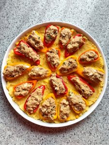 Cremige Grünkern-Kartoffeln mit Frühlingszwiebeln und Paprika