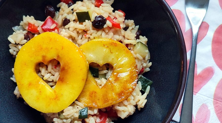 Zucchini-Paprika-Reis mit Kurkuma-Äpfeln